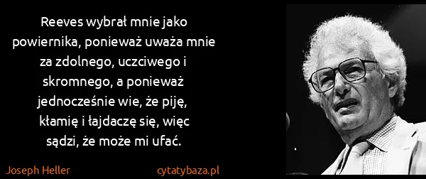 Reeves wybrał mnie jako powiernika, ponieważ uważa mnie za zdolnego, uczciwego i skromnego, a ponieważ jednocześnie wie, że piję, kłamię i łajdaczę się, więc sądzi, że może mi ufać.