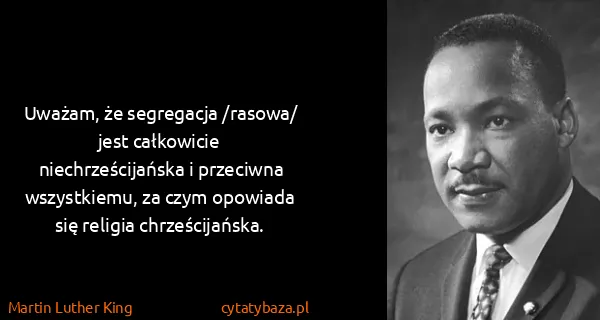 Uważam, że segregacja /rasowa/ jest całkowicie niechrześcijańska i przeciwna wszystkiemu, za czym opowiada się religia chrześcijańska.