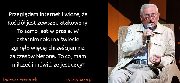 Przeglądam internet i widzę, że Kościół jest zewsząd atakowany. To samo jest w prasie. W ostatnim roku na świecie zginęło więcej chrześcijan niż za czasów Nerona. To co, mam milczeć i mówić, że jest cacy?