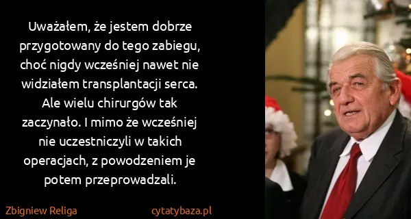 Uważałem, że jestem dobrze przygotowany do tego zabiegu, choć nigdy wcześniej nawet nie widziałem transplantacji serca. Ale wielu chirurgów tak zaczynało. I mimo że wcześniej nie uczestniczyli w takich operacjach, z powodzeniem je potem przeprowadzali.