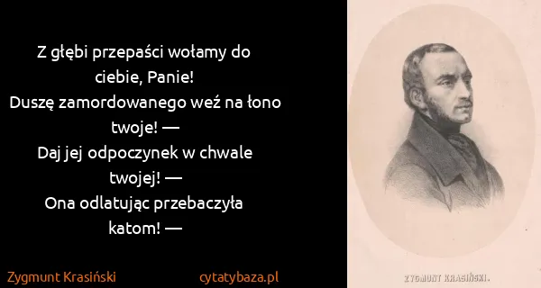 Chrystus nas już nie zbawi - krzyż swój wziął w ręce obie i rzucił w otchłań. Czy słyszysz, jak ten krzyż, nadzieja milionów, rozbija się o gwiazdy, łamie się, pęka, rozlatuje w kawałki, a coraz niżej i niżej - aż tuman wielki powstał z jego odłamków.